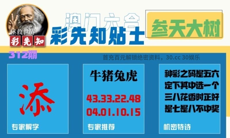 312期:彩先知贴士一字:【添】 诗句:参天大树 机密特诗:种彩之码是五六,定下其中选一个,三八花香时正好,是七是八不中奖 解:三八花香时正好,解女肖:鸡羊蛇猪兔 九肖:牛虎龙猴鸡羊蛇猪兔 七肖:牛虎龙猴鸡羊蛇 五肖:牛虎龙猴鸡 三肖:牛虎龙 |